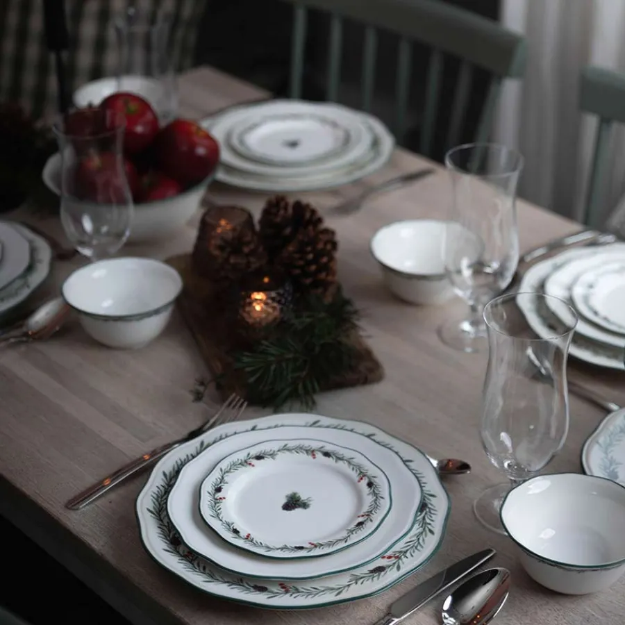</ul Gi dessertbordet eller småretter et vakkert hint av julestemning med Furu asjett på 16 cm. Denne delikate asjetten fra Furu juleservise er dekorert med grankvister og kongler som minner om norsk natur, og passer perfekt til julebakst, desserter og små måltider. Den tidløse designen gjør at du enkelt kan kombinere den med andre deler av Furu-serviset for en helhetlig og stemningsfull borddekking i julen.