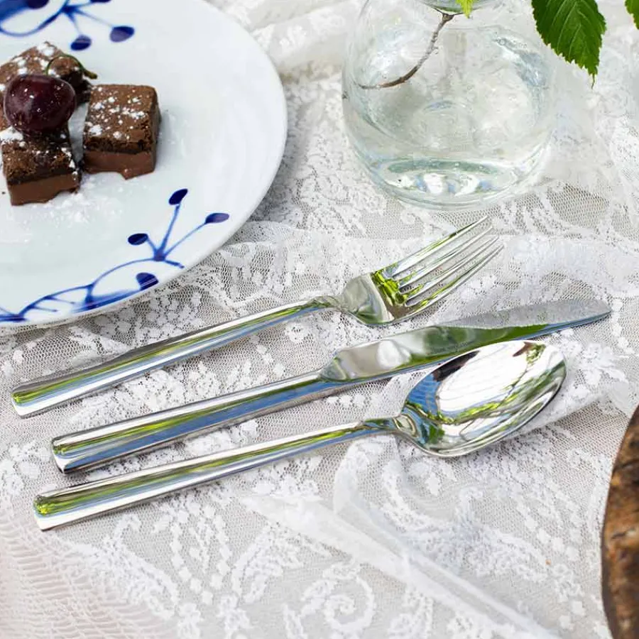 Mineo bestikksett til 12 personer i 18/10 rustfritt stål fra Christiania Bestikk. Det klassiske utseende på bestikket vil komplementere ethvert dekket middagsbord og bidra til et elegant uttrykk. Bestikket kan vaskes i oppvaskmaskin.