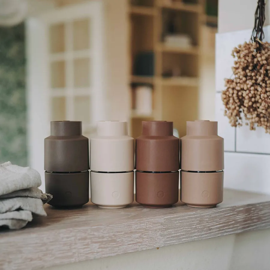Sett smak og stil i system med Billund krydderkvern fra CrushGrind® i den varme og naturlige fargen Cinnamon. Det smarte upside-down-designet holder bordet fritt for krydderrester, samtidig som den kompakte formen gjør kvernen enkel å håndtere.Laget i lett, slitesterkt biokomposittmateriale og utstyrt med en praktisk silikonplugg i bunnen, er kvernen både funksjonell og miljøvennlig. Den keramiske CrushGrind®-mekanismen gir justerbar kverning og presis kontroll – perfekt for salt, pepper og tørre krydder.Billund i Cinnamon kombinerer naturlige toner med moderne funksjonalitet – en liten kvern som gjør en stor forskjell på kjøkkenet eller spisebordet.