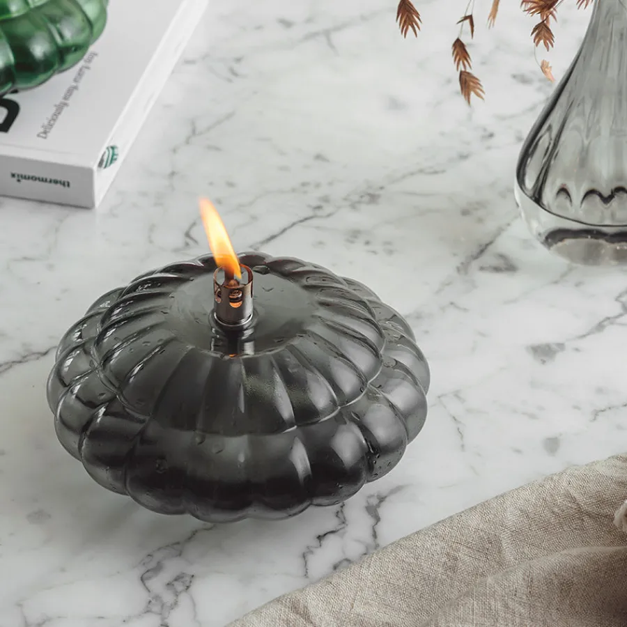 Oljelampe på 15 cm i fargen røkgrå fra hadeland Glassverk og serien Aurora. Med et optisk glass og en delikat gråtone skaper oljelampen en stilrik og avslappende atmosfære til stuen. Oljelampen er et smykke i seg selv når den ikke er tent, og gjør seg flott til de ulike stilarter. Olje kjøpes separat.