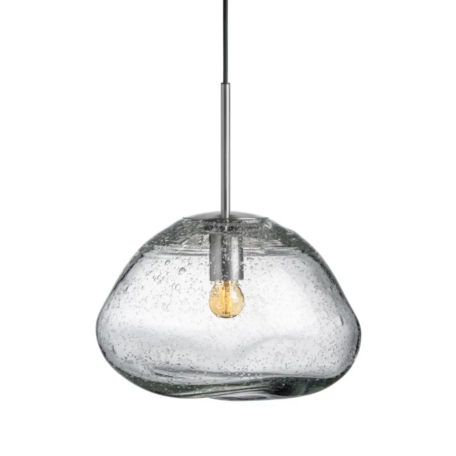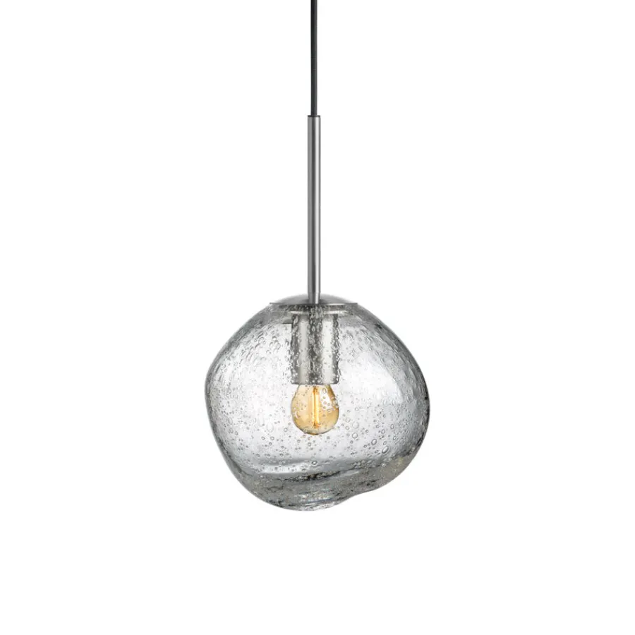 Oppdag skjønnheten i det naturlige med Crystal Stone pendellampe – en hyllest til håndverk og organisk design. Hver lampe er munnblåst og formet mens glasset fortsatt er varmt, noe som gir en unik kuppel med særpreg. Den klare sodaglass-varianten skaper et elegant lysspill, som minner om regndråper på et vindu eller smeltende istapper i vårsol.