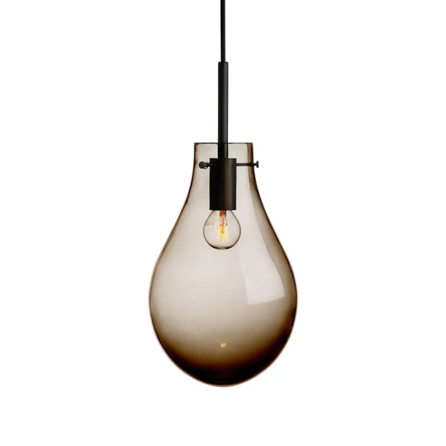 Dråpe fungerer like godt som et enkeltstående blikkfang eller i en klynge for en mer dramatisk effekt. Hver lampe produseres på Hadeland Glassverk etter 250 år gamle teknikker, der erfarne håndverkere munnblåser og håndsliper hvert eksemplar, noe som gjør hver Dråpe unik. Designet av Lina Rincon, forener lampen klassisk glasshåndverk med et moderne, minimalistisk formspråk. Lyskilde medfølger ikke – vi anbefaler en E27 LED-pære som fremhever glassets varme nyanser. Dråpe Kakao Glatt er et stilsikkert valg for den som ønsker varig kvalitet og ekte håndverk i hjemmet.