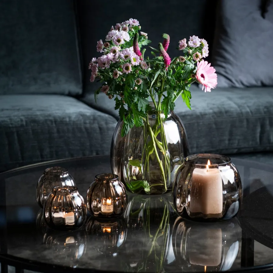 Lyslykt fra Hadeland Glassverk i munnblåst og håndslipt glass fremstilt i en delikat kakaofarge. Ella-serien er nydelig med sine myke og elegante former som er inspirert av det milde og feminine fra naturen. Optikken i glasset gir et vakkert spill av lyset, og det munnblåste designet gjør hvert produkt fra serien unik.