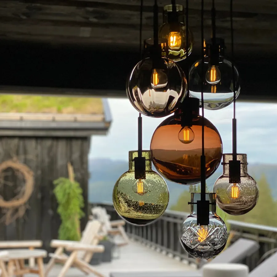 Fjellglød passer perfekt over spisebordet, i trappeoppganger eller rom med god takhøyde der lampens fulle skjønnhet får komme til sin rett. Pærer medfølger ikke, slik at du kan velge belysning som passer ditt hjem og ønsket atmosfære.