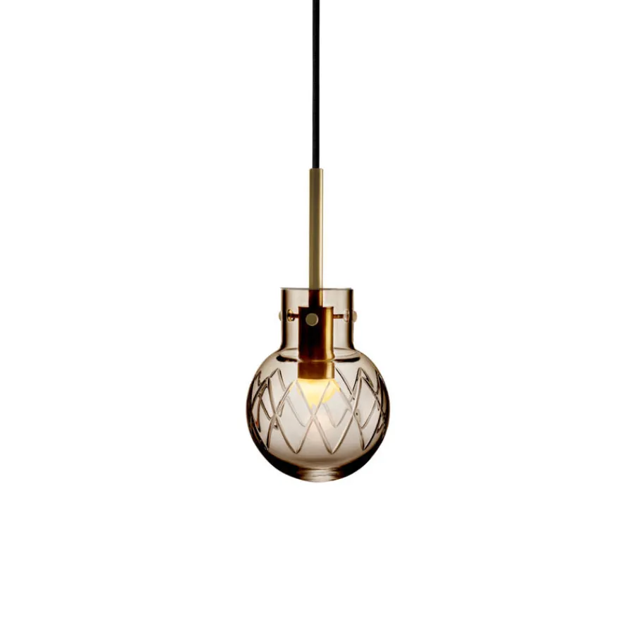 Lampen Krystallkule Kryss er en elegant lampe som kombinerer varme toner med presist håndverk. Kulen er munnblåst i klart glass og håndslipt med et kryssmønster over hele overflaten. Slipemønsteret gir en vakker refleksjon og et stemningsfullt lys som skaper lun atmosfære i rommet.