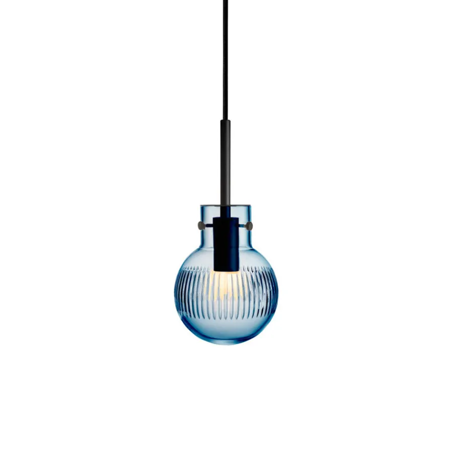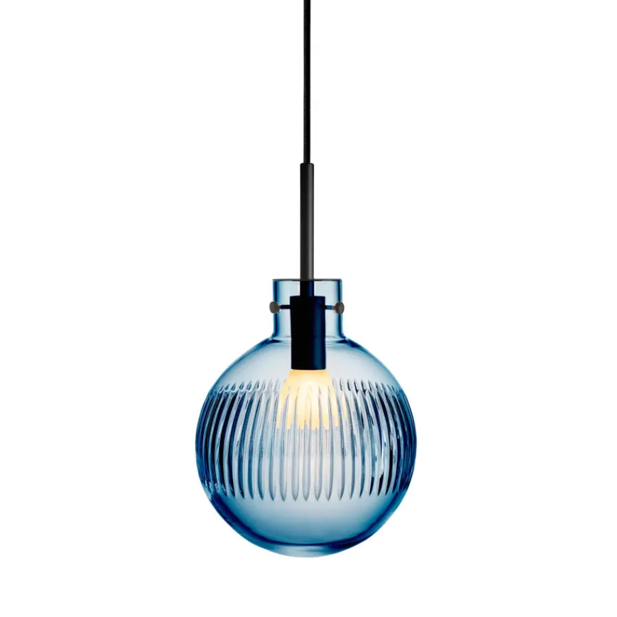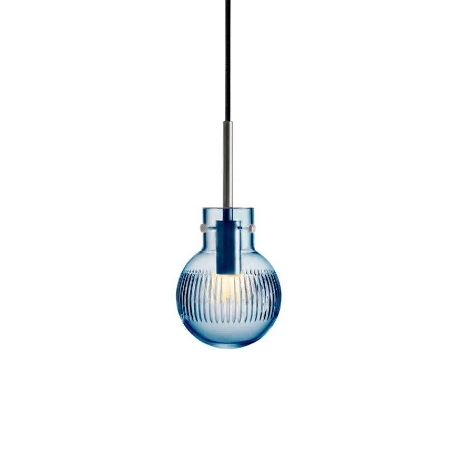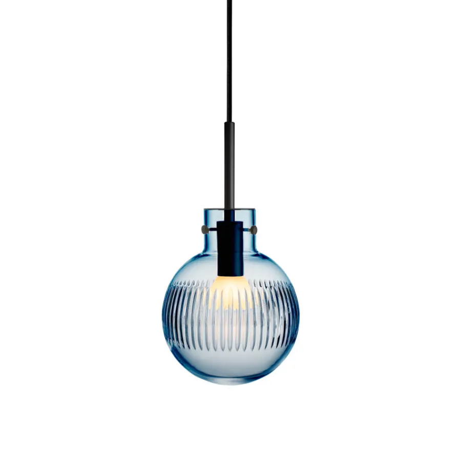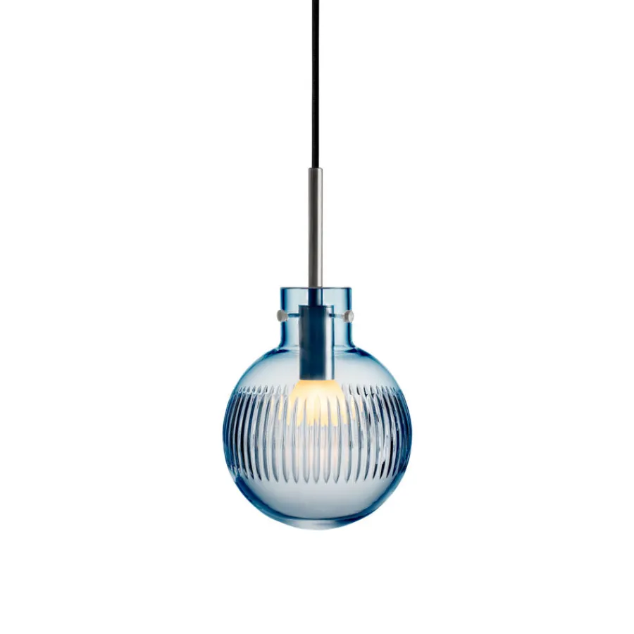 Lampen munnblåses og håndslipes på Hadeland Glassverk, der flere enn syv håndverkere setter sitt preg på sluttresultatet. Den dype stålblå fargen gir lampen et eksklusivt og moderne uttrykk, som gjør seg like godt alene som i en klynge over bord eller kjøkkenøy.