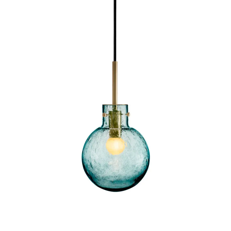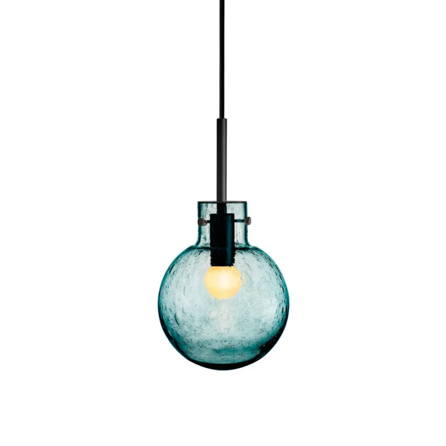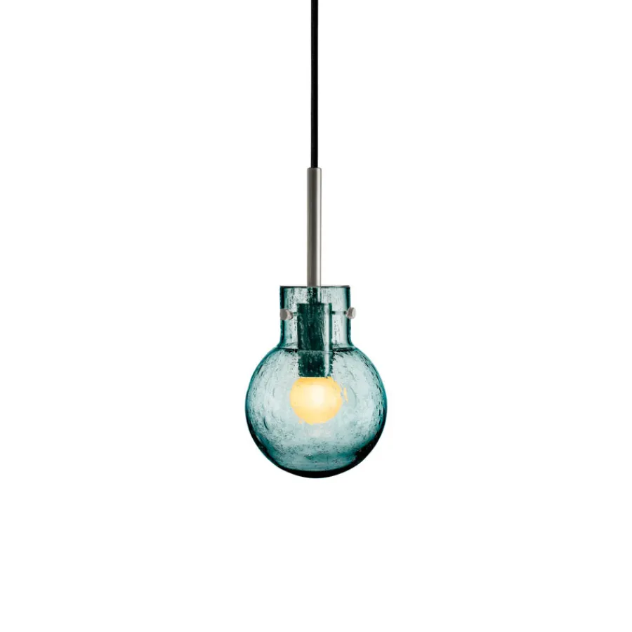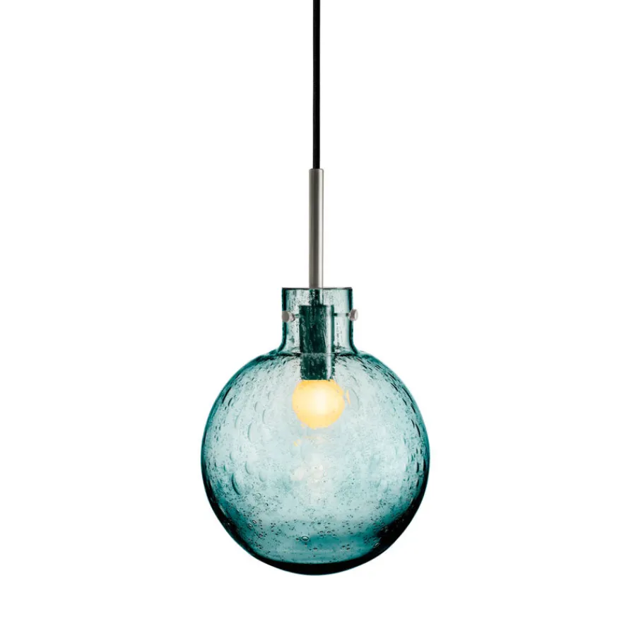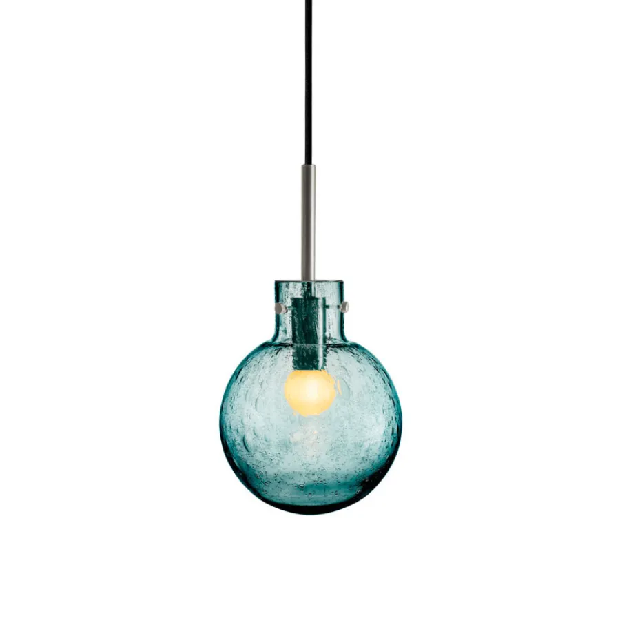 Alle krystallkulene munnblåses og håndslipes ved Hadeland Glassverk, der mer enn syv dyktige håndverkere bidrar i prosessen. Resultatet er lamper av høy kvalitet, hvor ingen blir helt like – hver enkelt kule bærer preg av ekte, håndlaget glasskunst. Den blågrønne fargetonen gir lampen et friskt og elegant uttrykk, med en dybde som passer perfekt både i moderne og klassiske interiører. Enten alene eller samlet i en klynge, skaper lampen et stemningsfullt lys og et sofistikert blikkfang i rommet. Designet er utviklet av Maud Gj. Bugge og bygger på en rik arv av norsk håndverkstradisjon.