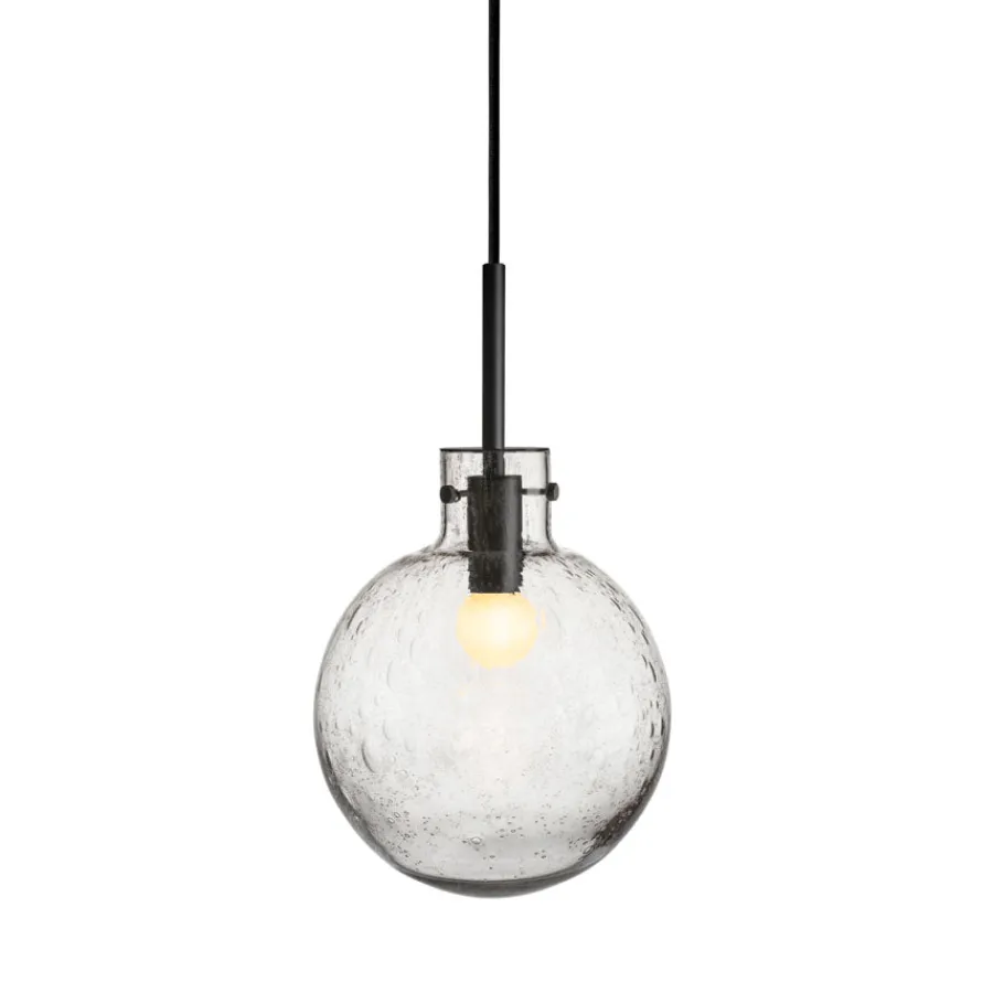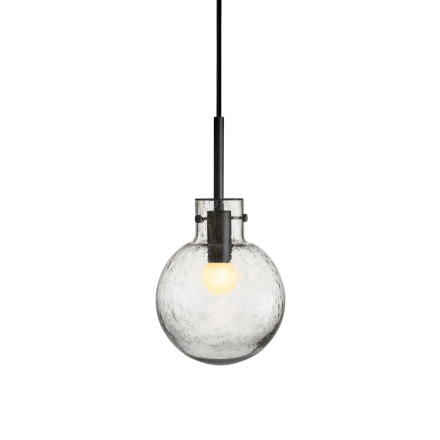 Krystallkule Soda fra Hadeland Glassverk er en pendellampe med sjel og historie. Inspirert av 1950-tallets eksperimentelle glasskunst, benytter den seg av den karakteristiske soda-teknikken – en metode som skaper en vakker, boblete struktur i glasset. Ved å drysse mineralpulver på den glødende glasskulen og varme den opp igjen, dannes små luftbobler som gir hver kule et unikt og levende uttrykk.