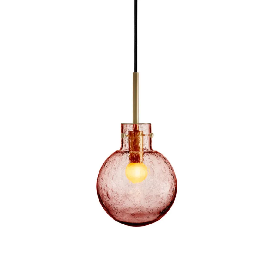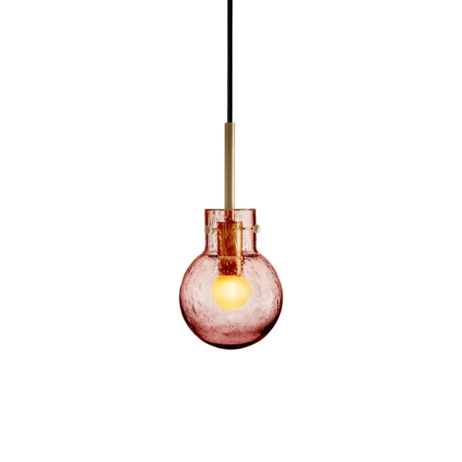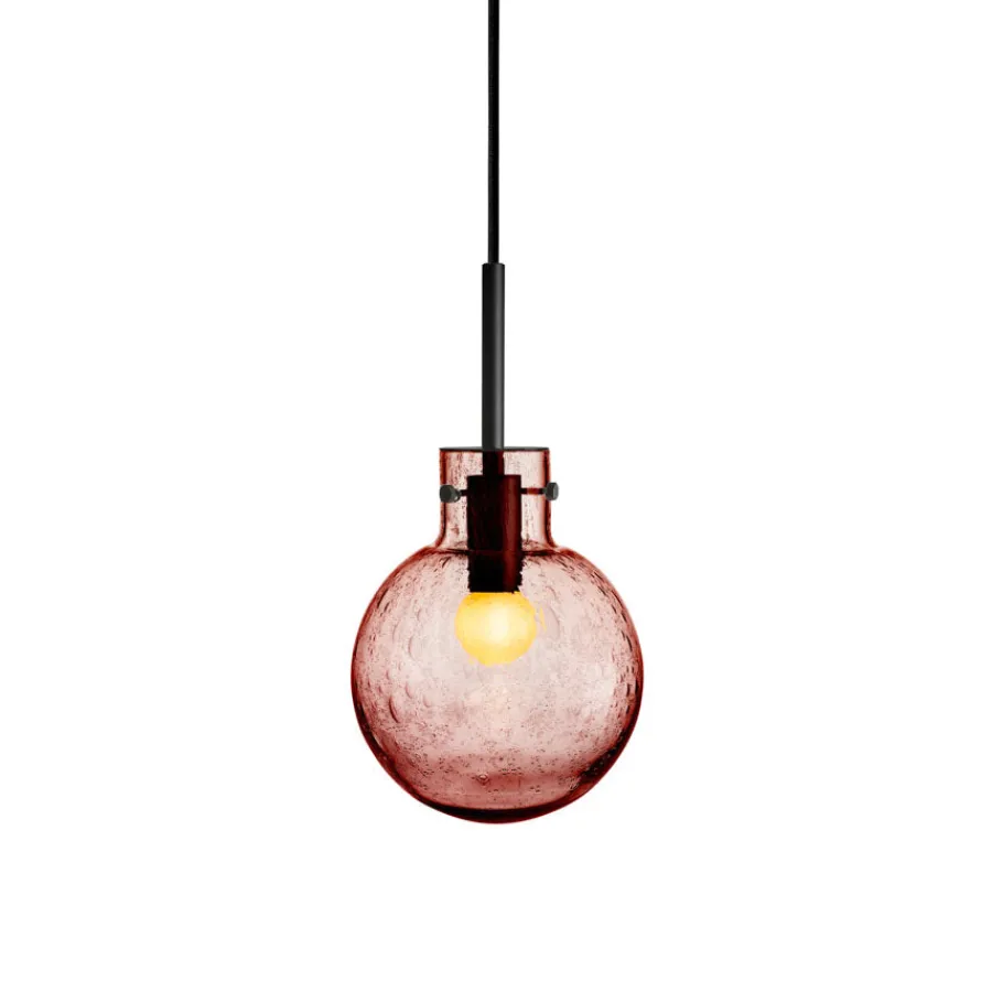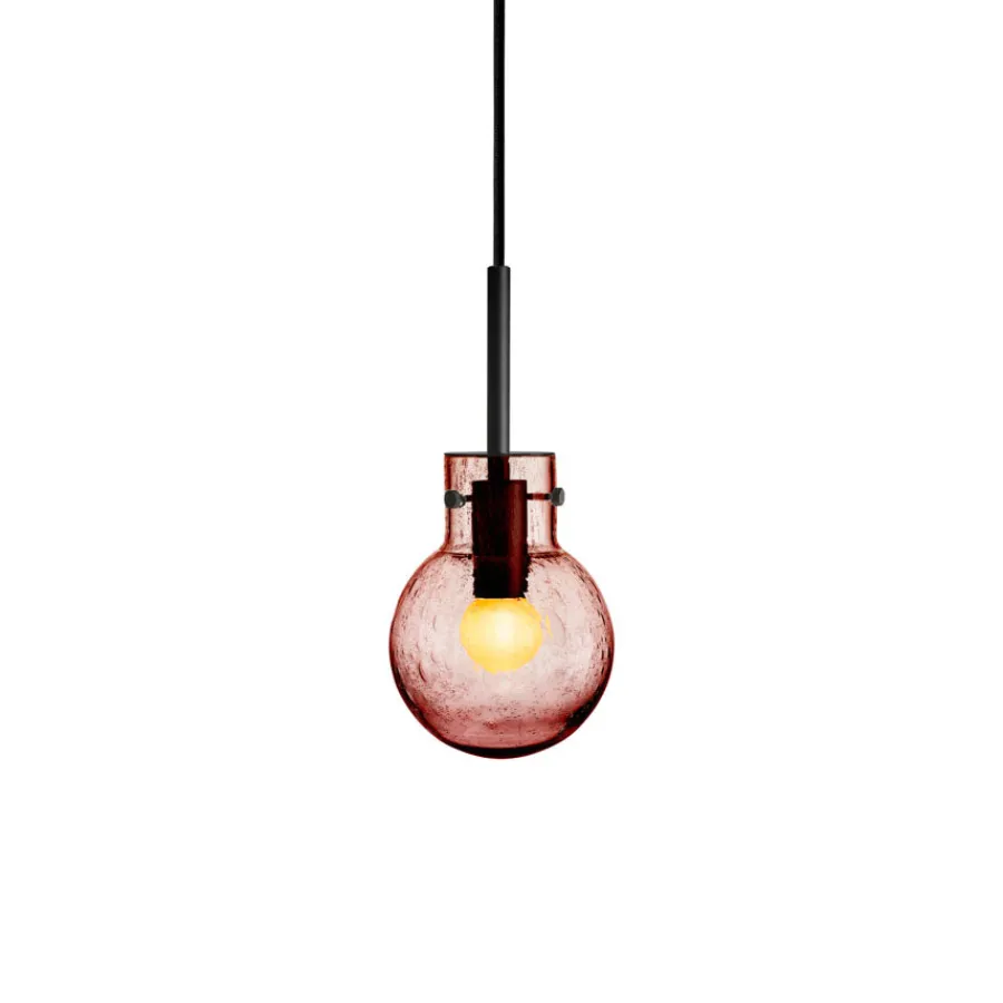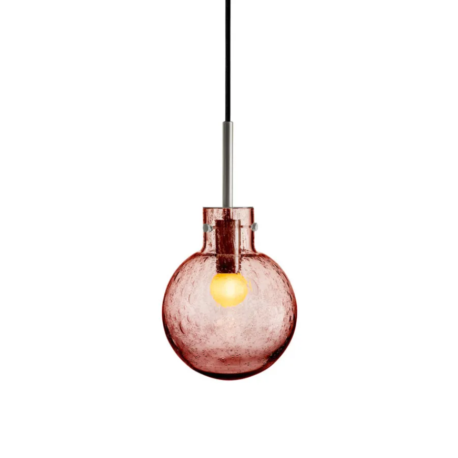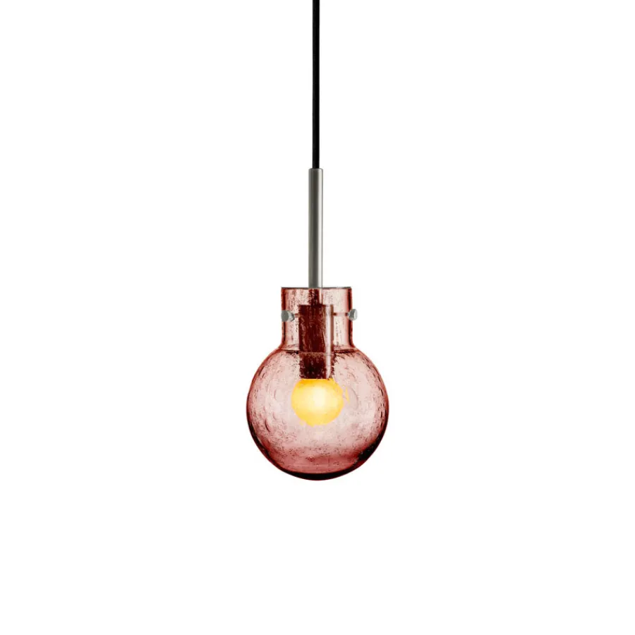 Taklampe Soda Morgenrød er en lampe som kombinerer tradisjonelt glasshåndverk med en lekende og elegant uttrykksform. Soda-teknikken, som ble særlig populær på 1950-tallet, gir glasset sitt karakteristiske boblemønster. Effekten oppstår når glassblåseren drysser mineralpulver på den varme glasskulen før den gjenoppvarmes og blåses ferdig i formen. Under denne prosessen dannes små luftbobler som fanges i glassmassen og skaper et unikt, livlig mønster i hver eneste krystallkule.