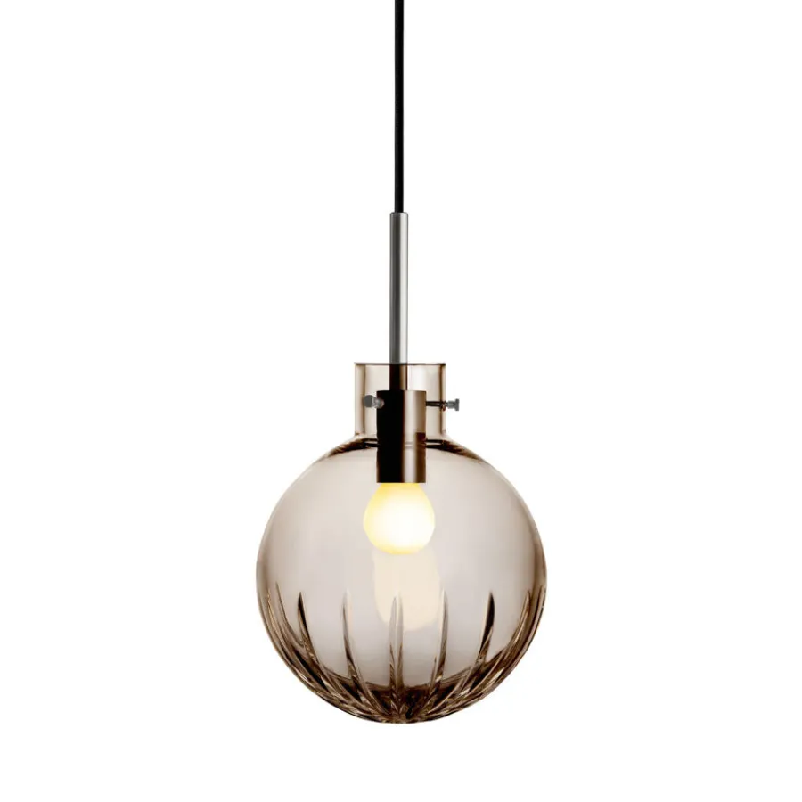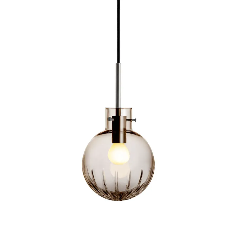 Velg mellom tre størrelser på krystallkulen og oppheng i sort, messing eller stål, slik at du kan skape en lampe som passer perfekt til ditt hjem. Designet er signert Maud Gj. Bugge, og forener klassisk norsk håndverk med tidløst design.