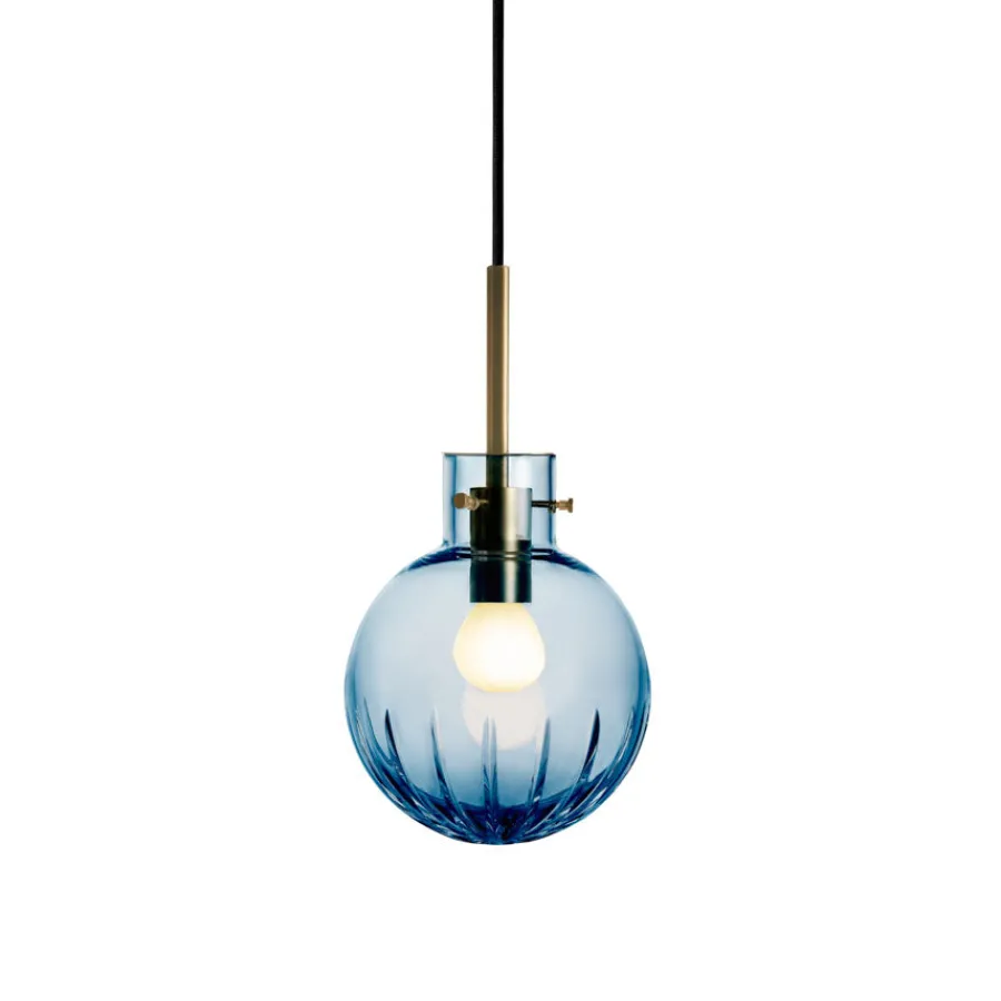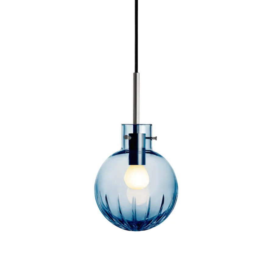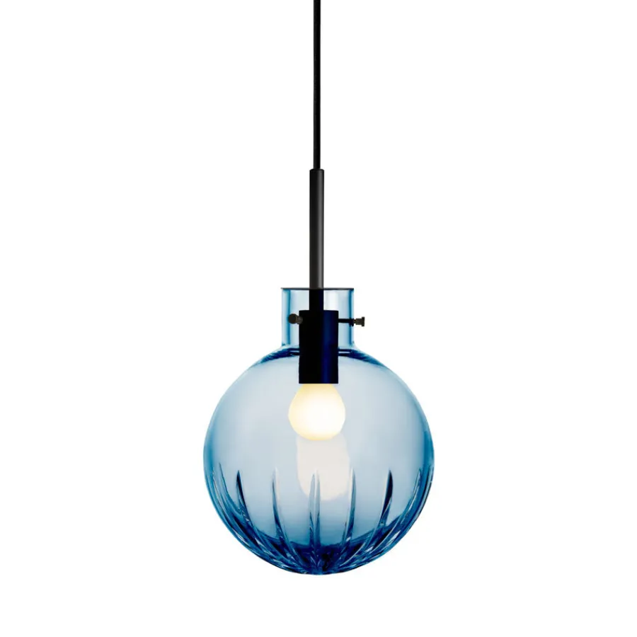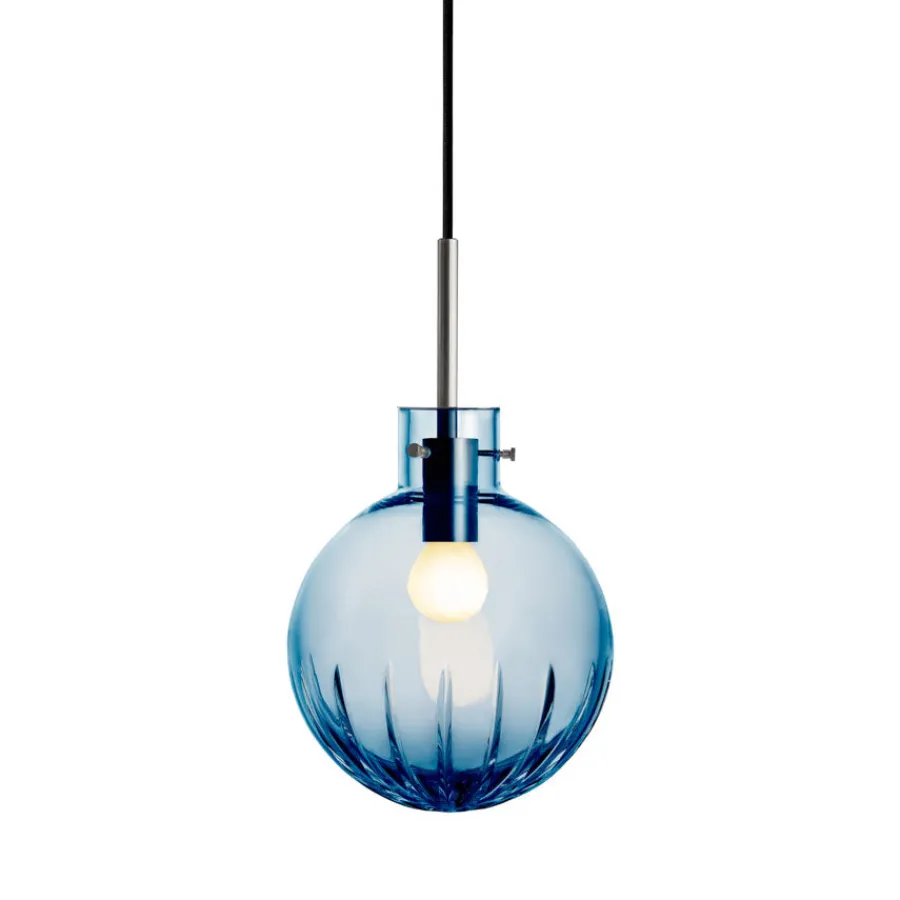 Krystallkule Stor Stjerne fra Hadeland Glassverk er en pendellampe som kombinerer diskret eleganse med gnistrende detaljer. Utgangspunktet er en helt glatt, munnblåst krystallkule, hvor et storslått stjernemønster slipes for hånd på den nedre delen. Dette gir lampen et delikat, men samtidig markant uttrykk – som en stjernehimmel fanget i krystall.