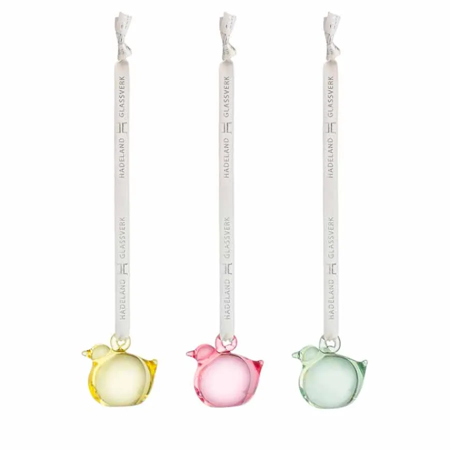 Skap en sjarmerende påskestemning med påskekyllinger fra Hadeland Glassverk. Disse vakre, klare glassfigurene kommer i en pakke med tre ulike farger – gul, rosa og grønn – og tilfører et elegant og lekent preg til påskedekorasjonen. Den glatte glassoverflaten reflekterer lyset vakkert, og det medfølgende båndet gjør dem enkle å henge opp.Perfekte til å pynte bjørkekvister, dekorere vinduet eller som en del av en kreativ borddekking. Disse tidløse kyllingene kan brukes år etter år, og passer både hjemme og på hytta. Gi påsken et eksklusivt uttrykk med påskepynt fra Hadeland Glassverk!