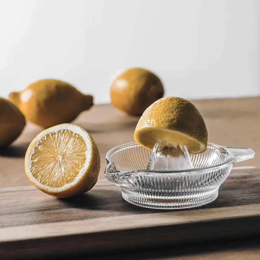 Sitronpresse i glass med vakre riller fra Hadeland Glassverk. Siri er en serie produkter som er relansert basert på Willy Johanssons design fra 1954. Serien inkluderer i dag nye produkter designet av Christian Svinndal og består blant annet av drikkeglass, asjetter, fat og mugger.