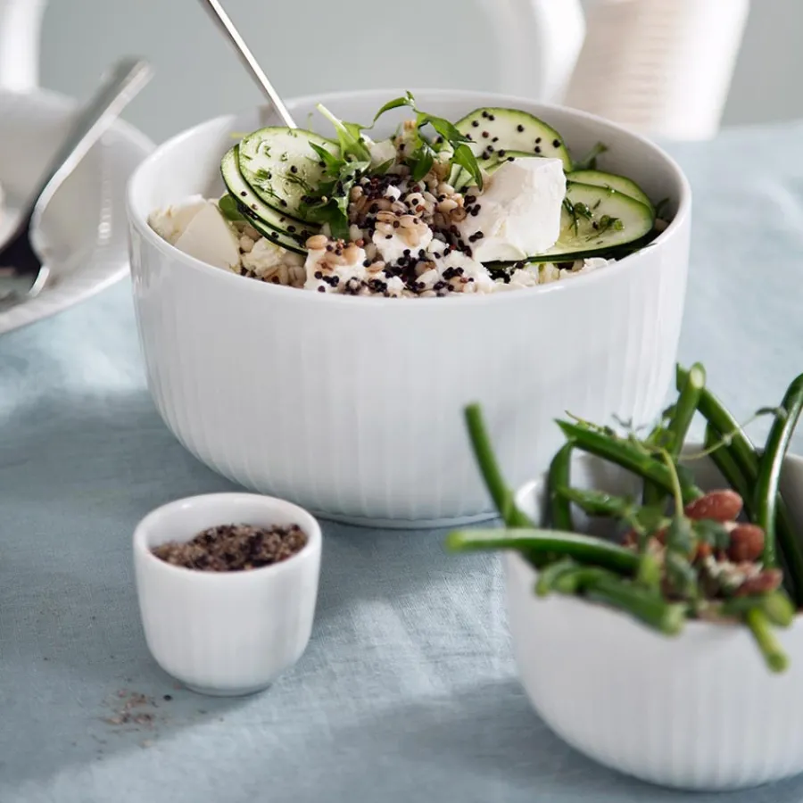 Eggeglass fra Kählers Hammershøi-servise, designet av Hans-Christian Bauer. De sjarmerende eggeglassene supplerer et stilig dekket frokostbord, og kan kombineres med servisedeler i flere forskjellige farger