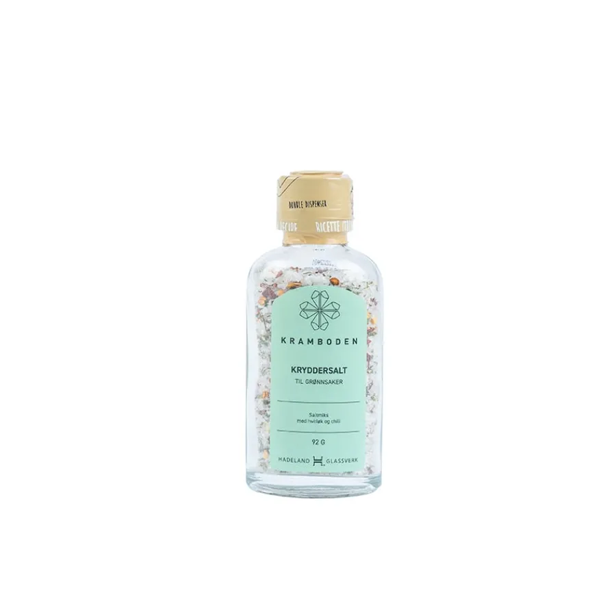 Kryddermiks fra Kramboden. Smakfull saltmiks med hvitløk og chili, perfekt til poteter og grønnsaker. Inneholder 92 gram. Oppbevares tørt.