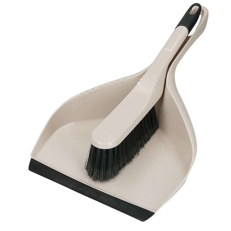 Miljøvennlig kost og freiebrett i resirkulert plast og halm. Med sin praktiske myke kant forenkles overføringen av partikler fra gulvet til brettet og den myke kosten feier skånsomt for å ta vare på delikate overflater samtidig som den effektivt samler opp partikler for en grundig rengjøring.