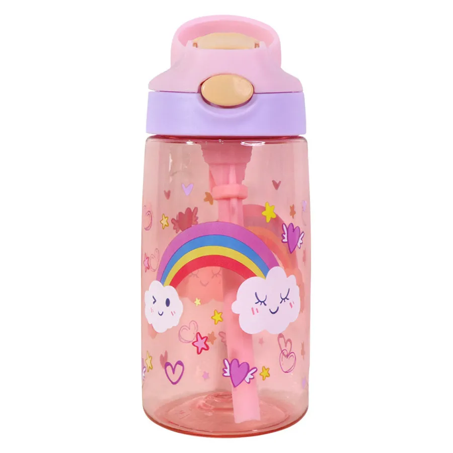 Gjør hverdagen litt mer fargerik med denne søte rosa drikkeflasken i slitesterkt Tritan-materiale. Flasken rommer 480 ml og er dekorert med et lekent motiv av regnbue, skyer og stjerner – perfekt for barn eller alle som elsker glade detaljer! Med praktisk sugerør og smart lokk, blir det enkelt og morsomt å drikke både hjemme, på skolen eller på tur.