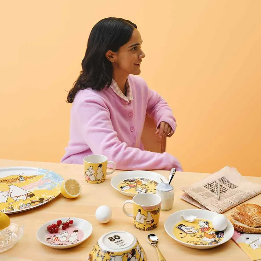 Denne asjetten på 15 cm fra «Familietid»-serien er ideell for å tilføre en varm og innbydende stemning til måltidene. Illustrasjonene fremhever Mummi-familiens samhold og gleden ved å være sammen. Perfekt for frokost, småretter eller snacks, og laget av holdbart porselen som tåler daglig bruk og oppvaskmaskin. Det harmoniske designet med varme gule og rosa toner gjør den til en nydelig gave.