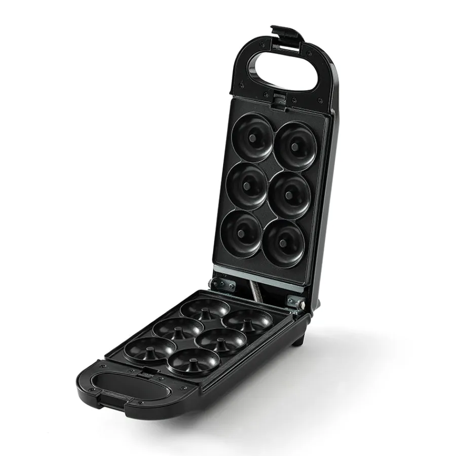 Donutjernet fra Nordic Sense gjør det enkelt å lage dine egne små, herlige donuts hjemme. Med plass til seks donuts om gangen kan du lage en hel runde på kort tid, og med muligheten til å snu maskinen under steking får du perfekt jevnt stekte donuts. Slip fantasien løs med pynt som farget glasur, smeltet sjokolade eller vaniljesukker. Lysindikatoren viser når maskinen er klar for deig, slik at resultatet blir perfekt hver gang. De avtakbare platene med non-stick-belegg gjør både steking og rengjøring til en lek.
