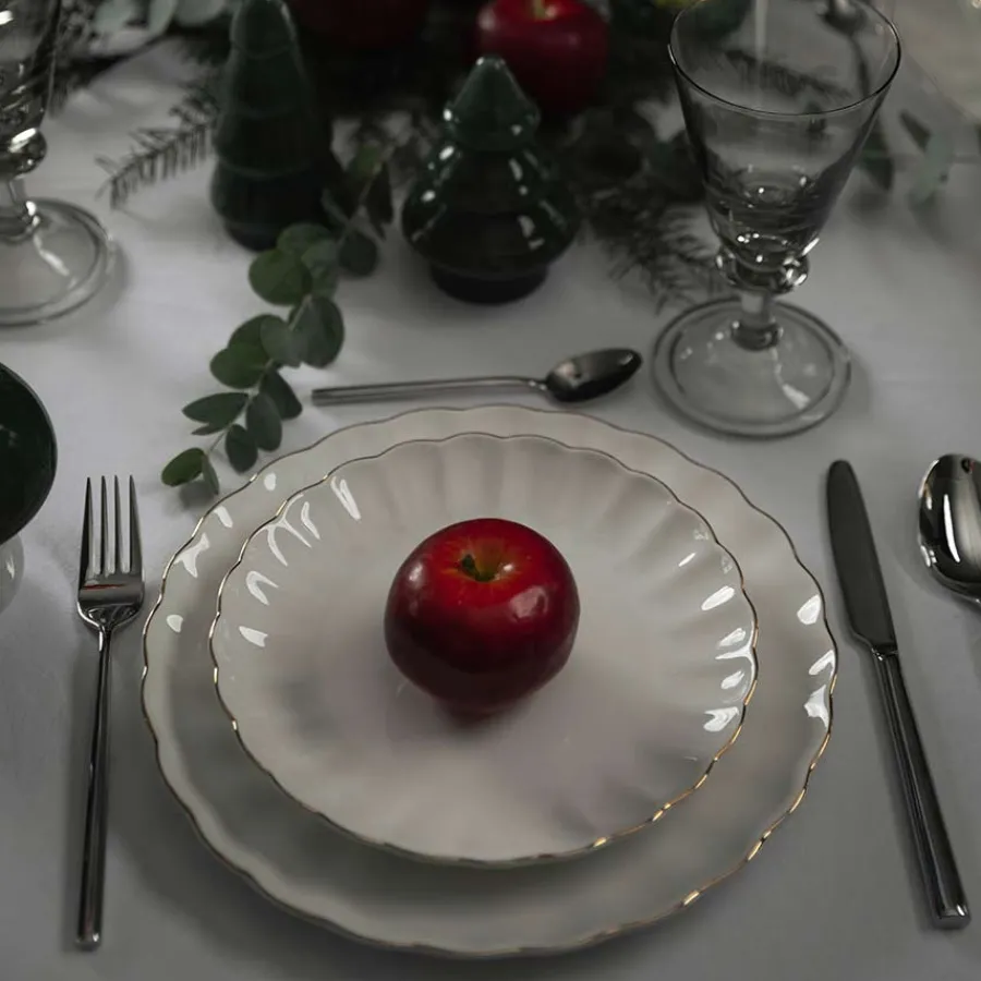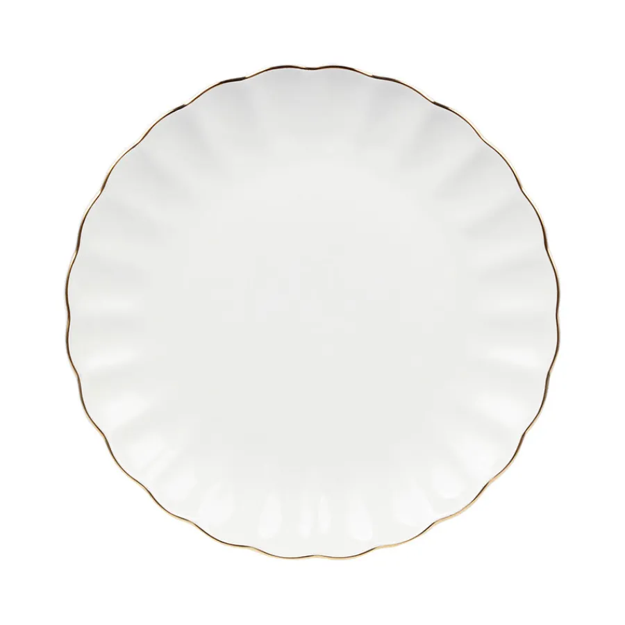 Denne delikate tallerkenen på 21 cm fra Lilly-serviset kombinerer tidløs eleganse med praktisk funksjonalitet. Størrelsen gjør den ideell til forretter, desserter eller frokostservering. Den hvite flaten gir et rent og stilfullt uttrykk, mens den eksklusive gullkanten tilfører et luksuriøst preg. Denne tallerkenen er perfekt for spesielle anledninger som julemiddager, bryllup eller andre festlige sammenkomster, men fungerer like godt i hverdagen. Kombiner den med de andre delene i Lilly-serviset for en gjennomført borddekking. Enten du serverer en smakfull forrett eller en lekker kakebit, løfter denne tallerkenen opplevelsen.