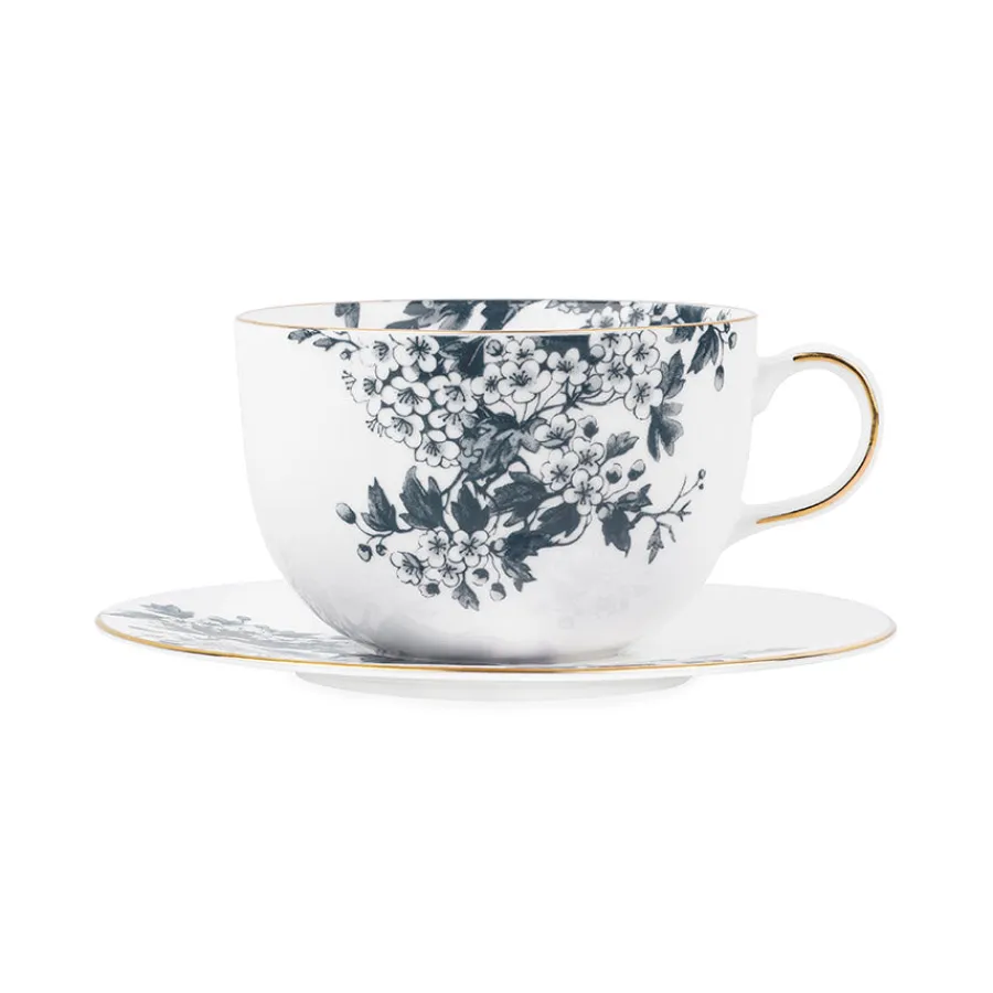 Koppen og skålen i 40 cl med antrasittfarge og gullkant er både stilren og praktisk. En perfekt kombinasjon av moderne og klassisk design.