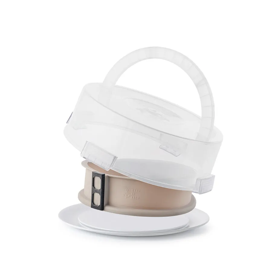 Gjør baking enklere og mer stilfull med Bake it Easy – nå med en smart kombinasjon av porselensfat, silikonform og praktisk lokk med ring. Dette allsidige kakefatet på 24 cm er perfekt til både hjemmekos og selskap, og gir deg alt du trenger for å bake og servere med stil. Den fleksible silikonformen gjør det enkelt å løsne kaken uten at den går i stykker, mens det elegante porselensfatet er vakkert nok til å settes rett på bordet.Lufttett lokk med bærehåndtak gjør det enkelt å ta med kaken til selskap, eller oppbevare den trygt hjemme. Enten du baker sjokoladekake, ostekake eller små bakverk, gir dette settet deg presise resultater og mindre søl. Perfekt gaveidé for bakeentusiaster!