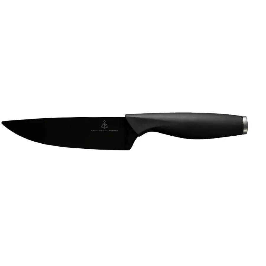 Kokkekniv i sort fra De Cuisson. Kokkekniven er en del av Porsgrunds Porselænsfabriks serie med porselenskniver. Knivens blad av porselen sikrer en skarphet som holder seg lenge, og som også holder frukt og grønt lenger friskt, da oksideringsprosessen starter fortere ved bruk av stålkniver. Kniven er godt egnet til grønnsaker, fisk og kjøtt uten ben. Les mer om bruksområder under tilleggsinformasjon.
