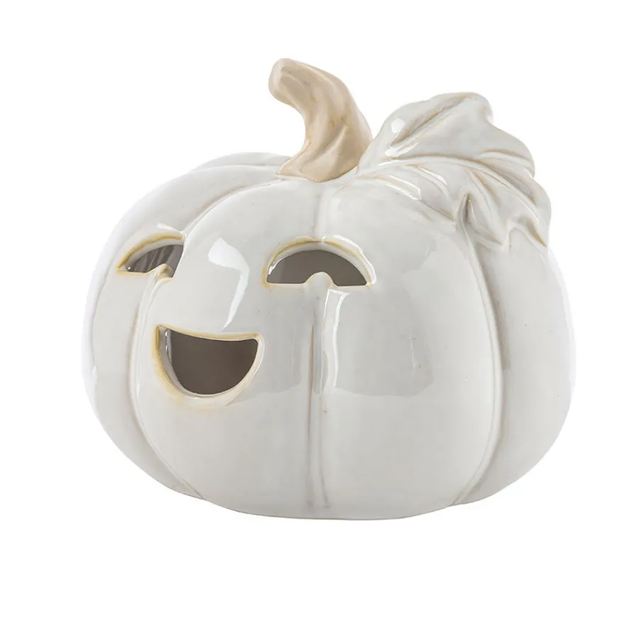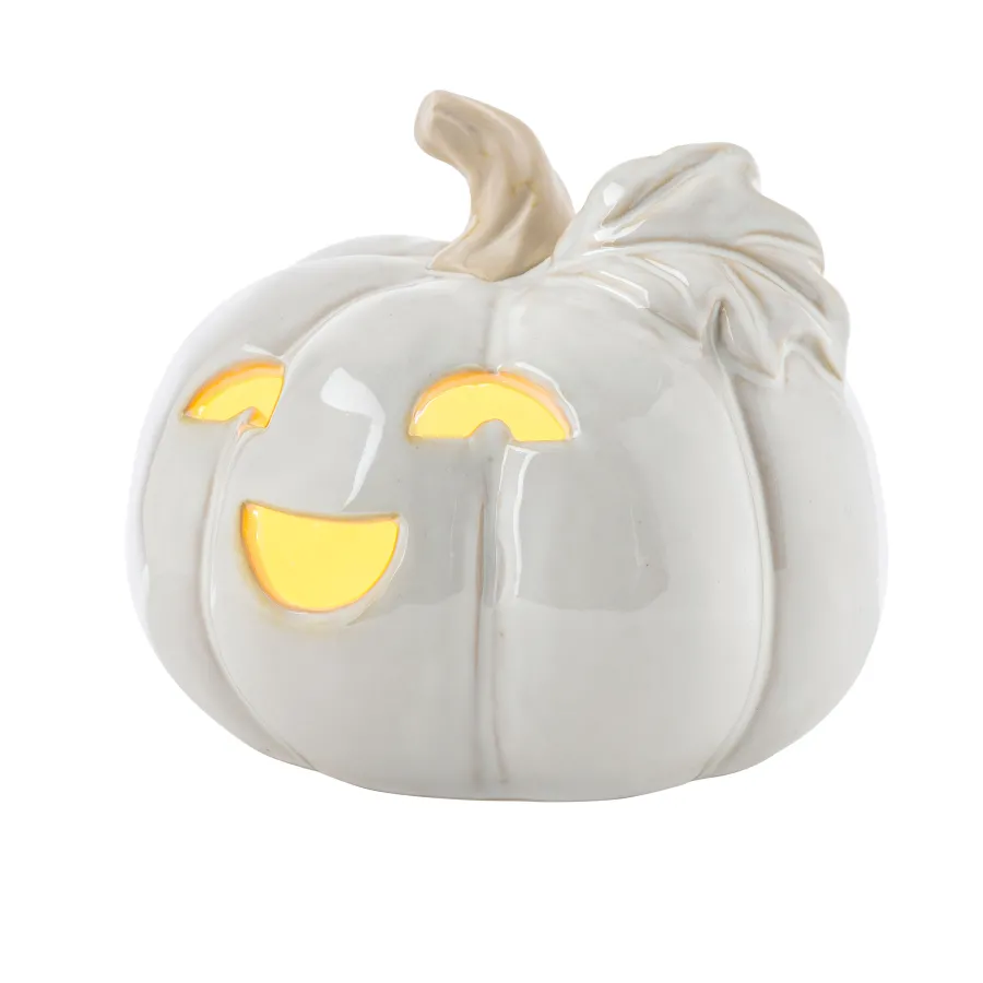 Skap en stemningsfull atmosfære med gresskar lyslykt i keramikk, 15 x 14,5 cm, fra Porsgrunds Porselænsfabrik. Med sitt myke formspråk og koselige uttrykk sprer den varme og hygge i hjemmet, enten du bruker den på mørke høstkvelder eller som en helårsdekorasjon.