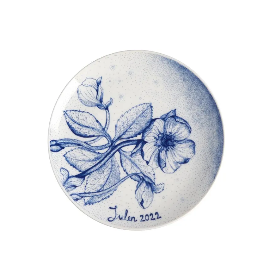 Årets flotte juleplatte for 2022 fra Porsgrunds Porselænsfabrik. Årets motiv følger samme tema som i fjor, julevekster, og i år har en vakker julerose fått sin plass på de unike samleobjektene. Cathrine Kirkerud har designet det flotte motivet, der hun lot seg inspirere av rosemotiv på en av Porsgrunds Juleplatter fra 1909.
