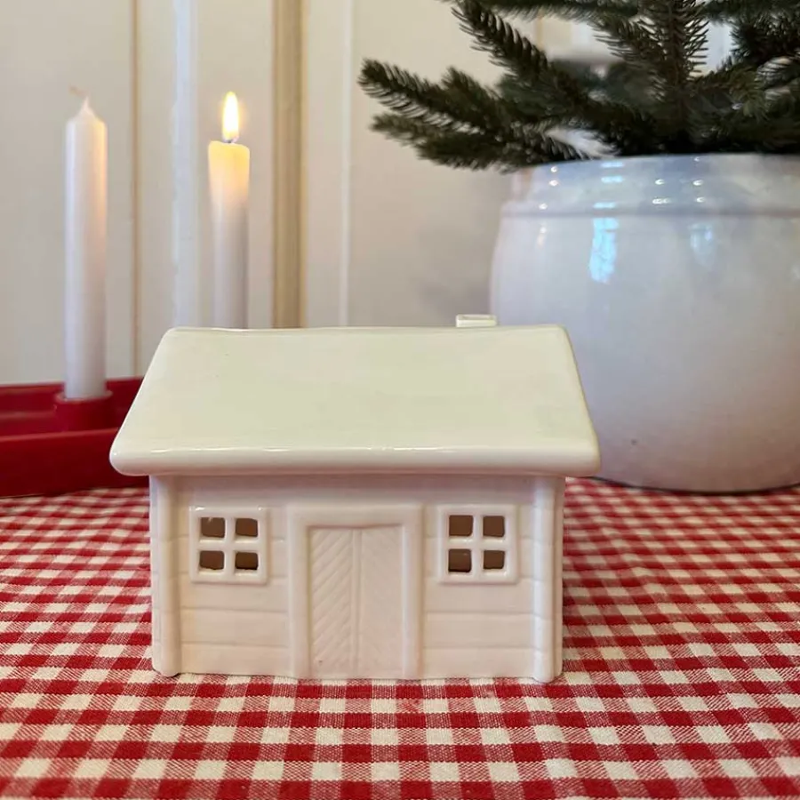 Veslestugu med pipe fra Porsgrunds Porselænsfabrik og serien Jul På Tunet. Det søte porselenshuset er inspirert av laftede trehus og designet som en hyllest til våre forfedre, kulturen og den rike historien som finnes rundt om i Norge. Porselenshuset er fremstilt i et design inspirert av norsk byggeskikk fra 1700 – 1800-tallet og måler 13,4 x 10,8 cm. Inkluderes LED-lys som kan plasseres inni huset.