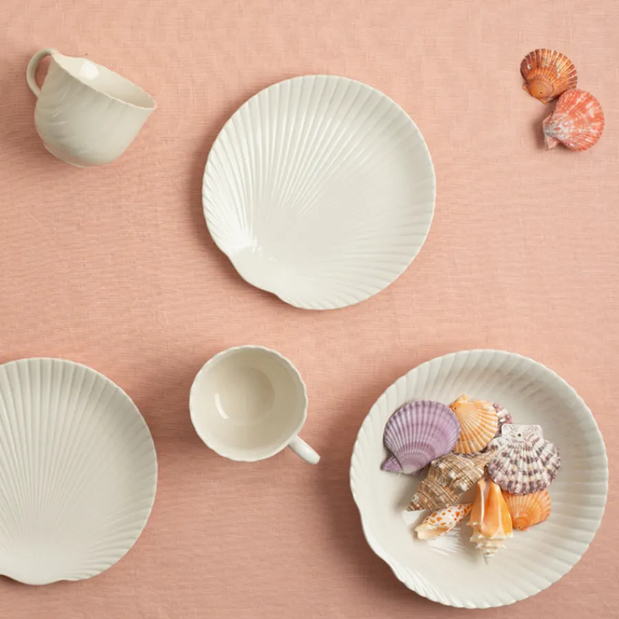 Kombiner gjerne med de større tallerkenene og krusene i samme serie for en komplett bordopplevelse inspirert av skjellenes naturlige skjønnhet.