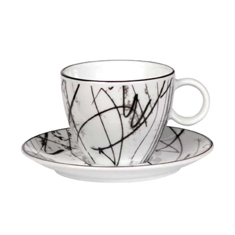Partitur underskål til espressokopp fra Porsgrunds Porselænsfabrik er designet med dekorelementer fra balletten «Stormen» basert på Shakespears skuespill med samme tittel. Partitur er et moderne servise som kan brukes alene eller sammen med annet servise for et lekent og moderne uttrykk. Partitur er designet av Ole Lislerud, og er produsert i edelt høybrent feltspatporselen. Skålen kan enkelt vaskes i oppvaskmaskin. Skålen måler 13 cm.