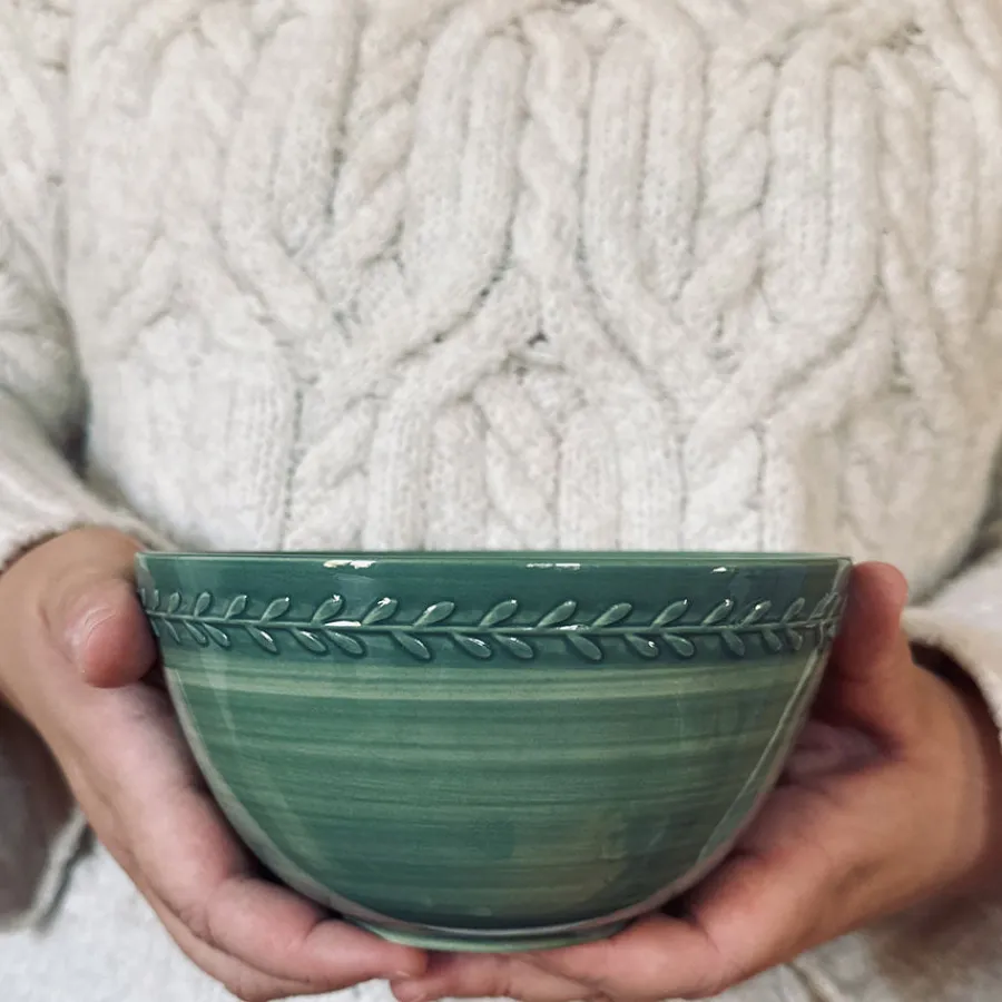 Pors Bollen på 16 cm er ideell for alt fra frokostblanding til småretter og snacks, og tilfører et sofistikert og naturlig uttrykk til bordet. Inspirert av porsplantens grågrønne fargetoner og detaljer, bringer denne bollen en følelse av norsk natur inn i hjemmet. Relieffet av pors langs kanten gjør den både taktil og visuelt tiltalende, og den vakre grønnfargen harmonerer lett med andre serviser.