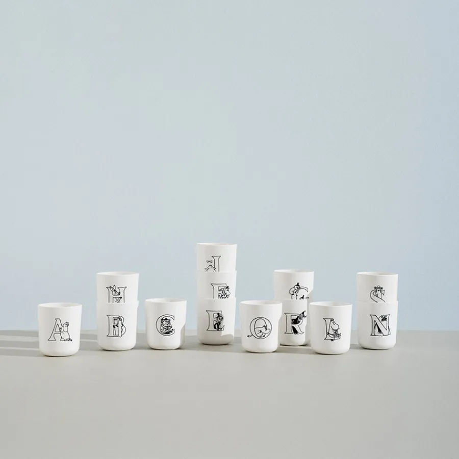 Kopp på 20 cl med bokstaven F, tilhørende ABC-serien fra Rig-Tig. Serien kommer med kreative tegninger inspirert av Tove Janssons spennende Mummi-univers og koppene har hvert sitt motiv med ett bokstav som skal invitere til nysgjerrighet rundt alfabetet og ord. Serien er med sine runde former designet spesielt for barn og små barnehender. Koppen tåler oppvaskmaskin og mikrobølgeovn.