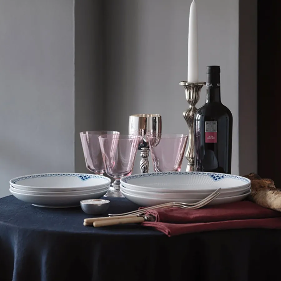 Dyp tallerken 25 cm fra Royal Copenhagen i serien Prinsesse Blå. Det elegante serviset Prinsesse Blå er et klassisk og tidløst servise som gir et stilfullt preg på spisebordet. Tallerkenen er vakkert omkranset med en håndmalt blondekant og elegante riller. Det sjarmerende serviset kan kombineres med serien Hvit Riflet fra Royal Copenhagen for et stilrent uttrykk på bordet. Tallerkenen tåler både oppvaskmaskin og mikrobølgeovn.