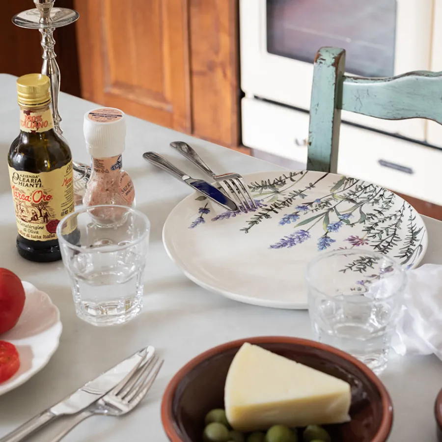Tallerken med vakre blomsterdetaljer fra Christiania 1739. Serviset Provence har fått motiv inspirert av blomsterenger fylt med velduftende lavendel fra nettopp Provence. Tallerkenens størrelse på 26 cm gjør den velegnet til lunsj eller middag, og vil med sitt delikate motiv danne et friskt og sjarmerende uttrykk på bordet.