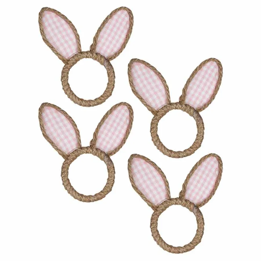 Skap en lekker og vårlig borddekking med disse nydelige serviettringene i rotting fra Easter Collection. De søte kaninørene i rosa- og hvitrutete stoff gir en romantisk og koselig påskestemning. Perfekte for en stilfull feiring! Gi påskebordet et delikat og sjarmerende uttrykk med disse nydelige serviettringene!