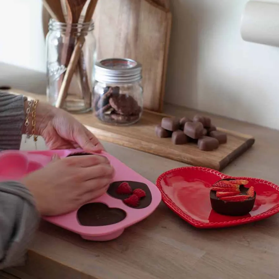 Bakeformen fra Love Collection er perfekt for å lage søte, hjerteformede kaker eller desserter. Laget av fleksibel og slitesterk silikon, gjør formen det enkelt å løsne baksten uten å skade den.Formen tåler temperaturer fra fryseren til opptil 220 ºC, noe som gjør den egnet for både baking og frysing. Formen er enkel å rengjøre og kan vaskes i oppvaskmaskin, noe som gir deg mindre jobb og mer glede av bakingen.