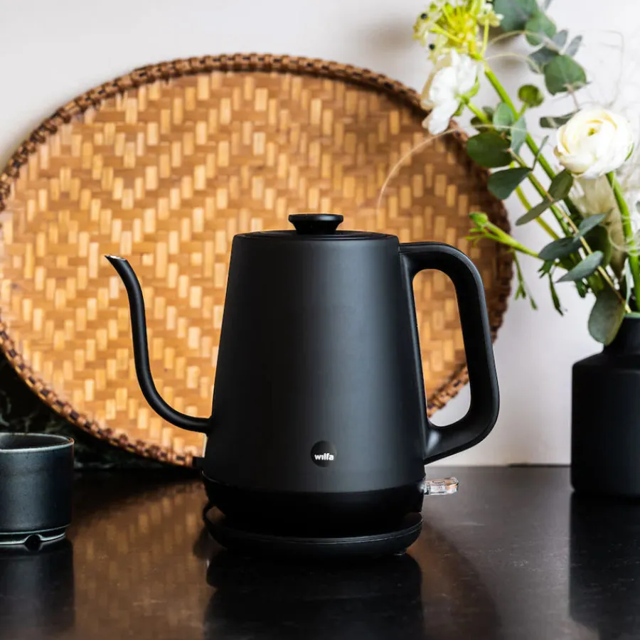 Vannkoker fra Wilfa. En stilren og funksjonell vannkoker, perfekt for presis brygging med «pour over»-teknikken. Den lange, slanke helletuten gir deg full kontroll over vannstrålen for en jevn ekstraksjon av kaffe. Med en automatisk avstengningsfunksjon ved kokepunktet beskytter den mot tørrkoking. Vannkokeren har et avtagbart lokk for enkel påfylling og rengjøring, og er BPA-fri for trygg bruk.